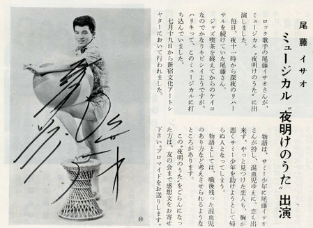 「曲芸でアメリカへ約1年間行っていて、最後にマイアミのホテル・アメリカーナで演って、フォンティンブローへショーを観にいったのですが、そこでサミー・デイビスJr.が。僕はまだ15~6歳でその名前も知らなかったのですが、拳銃を使うは、タップを踏むは、モノマネを演るは、ドラムを叩くは……。それで僕も、プレスリーの歌だけではなくて。ヴォードヴィルと言いますか、お芝居もやれて歌も歌えて踊れてということを目指していました。すると、いずみたく先生が僕を(プロダクションに)引っ張ってくれて」(尾藤イサオ)